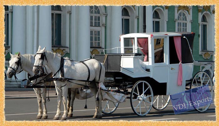 We are original manufacturers and exporters of any / all type of Horse Drawn Carriages such as Cinderella Horse Carriage Vice Versa Horse Carriage Two Seater Horse Carriage Victoria Horse Carriage Surrey Carriage Passenger Tourist Carriage Multi Purpose Carriage Horse Drawn Landau Horse Drawn Surries Horse Drawn Hearses Funeral Carriage Atm Fitted Vending machines fitted carriages Horse Drawn Carriage Pleasurable Room Type Gipsy Caravan Carriage Horse Drawn Gigs Horse Drawn Mini Sleighs Glass Coach Type Horse Drawn Carriage Phaetons Traditional baggies / Tangas to Victoria type Vice Versa Covered Room Type, Royal Glass Coaches Presidents Presidential Carriages Guard of Honor Republic Day Celebration Carriages Wedding Purpose Carriage School going kids Transportation purpose carriages Religious Priests Bagghies Procession Carriages Advertisement purpose carriages Bus type double Decker carriages etc. We have highly professional workman having experience 30 to 35 years in this manufacturing line as this is our family run business.