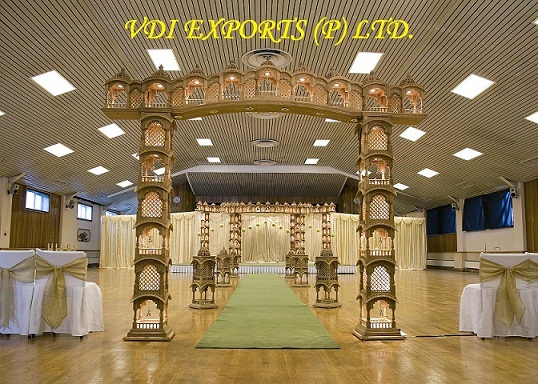 We are original manufacturers and exporters of any type of Indian Wedding Mandaps Mandap Pillars Wooden Mandaps Carved Mandaps Wrought Iron Mandaps Fiber Mandaps Wedding Stages Stalls Mandap Backdrops Aisle corridor Pillars Entrance Statues Welcome Themed Gates Lighted Pillars Mandap Furniture Mandap Carving Furniture Bride and Groom Two Seater Chairs Banquet Hall Chairs Chair Covers Bows Sashas sashes Ribbons caps Table Covers Table Runners Table Napkins Table Skirtings Canopies Tents Embroided Backdrops Plain Backdrops Lighted Backdrops Carpets Cushion Covers Flower Decoration Material Mandap Decoration Flower Chains Wedding Umbrellas Themed Umbrellas Wedding Doli Palki Palquin Swings Jhoolas Royal Thrones Catering Equipments Chaffing Dishes Karahi Stands Stainless Steel Aluminum Brass Copper Utensils of all Types Sizes Disposable Papers Thermocol Crockery Center Table Decoration items Wrought Iron Center Tables Stands Horse Drawn Wedding Carriages Cinderella Carriages Bugghies Horse Costumes Elephant Costumes Howdahs.