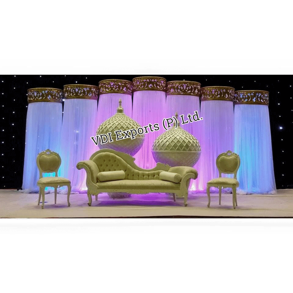 We are manufacturers and exporters of any type of Designer Wedding Stage Indian Vivah Shadi Ring Ceremony Stage Fiber Wedding fiber panel stages, photo frames wedding stages , carved backdrops stages Roman Pillared Wedding Stage Lighted Pillars Wedding Stage Carved Stage Wrought Iron Wedding Stage Mehendi Stage Fiber Stage Roman Pillared Wedding Stage Lighted Pillars Wedding Stage Embroidered Backdrop Wedding Stage Ring Ceremony Wedding Stage Etc. We are also original manufacturers and exporters of any type of Indian Wedding Mandaps Mandap Fiber Mandaps Wedding Stages Stalls Mandap Backdrops Aisle corridor Pillars Entrance Statues Welcome Themed Gates Lighted Pillars Mandap Furniture Mandap Carving Furniture Bride and Groom Two Seater Chairs Banquet Hall Chairs Chair Covers Bows Sashas sashes Ribbons caps Table Covers Table Runners Table Napkins Table Skirting Canopies Tents Embroidered Backdrops Plain Backdrops Lighted Backdrops Carpets Cushion Covers Flower Decoration Material Mandap Decoration Flower Chains Wedding Umbrellas Themed Umbrellas Wedding Doli Palki Palquin Swings Jhoolas Royal Thrones Wrought Iron Center Tables Stands Horse Drawn Wedding Carriages Cinderella Carriages Buggies Horse Costumes Elephant Costumes Howdahs.