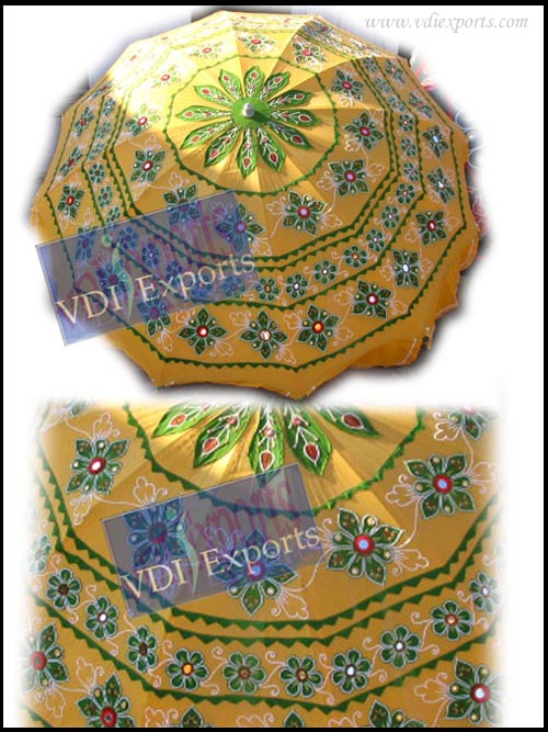 We Manufacture and Exports Wedding Umbrella and Parasols for Wedding Celebration Carnival parades for Holy processions in various fabrics like satin bright fabric cotton silk with embroidered work on it in multicolor designs. We have Heavy Embroidered Umbrella Custom made Umbrella Valvet fabric Umbrella Plain Fabric Umbrella with Hanging Tassels Umberlla with Hanging Frill Royal Pearl Beading Parasol Garden Historical film Parasols King�s Parasols Elephant Over shed Parasol Umbrella with laces Jaipuri theme Red Umbrella with hanging crystalsUmbrella Patch work Umbrella Beach Umbrella Rani Wedding Parasol Net Fabric Parasol with hanging tussels Parasols with Red Sequins Procession Umbrella Pearl Beading Parasols purple fabric Parasol Embroidery Rajasthani Theme Umbrella etc.
