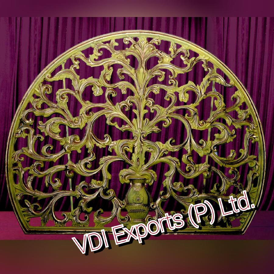 We are original Manufacturer and Exporters of all types of Fiber carved jhaali cutting jharoka mehraab theme leather panels with crystal studded etc backstage Panels Backdrops. We represent durable fine quality heavy duty unbreakable light weight Fiber carved jhaali cutting jharoka mehraab theme leather panels with crystal studded of different sizes and finishes. We have wide range of fiber panels in any Designs. So if you have any requirement of any type of fiber backstage panels backdrops leather panels please feel free to contact or send any picture through email as we fully capable to prepare in any height shape etc.