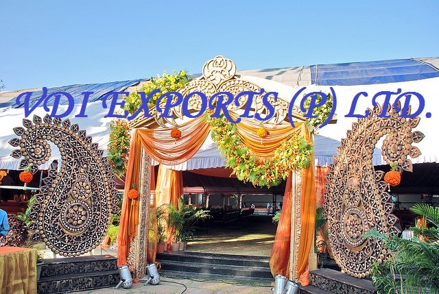 We are original manufacturers and exporters of any type of ENTRANCE GATE Wedding fiber entrance gate Indian Wedding Mandaps Mandap Pillars Wooden Mandaps Carved Mandaps Wrought Iron Mandaps Fiber Mandaps Wedding Stages Stalls Mandap Backdrops Aisle corridor Pillars Entrance Statues Welcome Themed Gates Lighted Pillars Mandap Furniture Mandap Carving Furniture Bride and Groom Two Seater Chairs Banquet Hall Chairs Chair Covers Bows Sashas sashes Ribbons caps Table Covers Table Runners Table Napkins Table Skirtings Canopies Tents Embroided Backdrops Plain Backdrops Lighted Backdrops Carpets Cushion Covers Flower Decoration Material Mandap Decoration Flower Chains Wedding Umbrellas Themed Umbrellas Wedding Doli Palki Palquin Swings Jhoolas Royal Thrones Catering Equipments Chaffing Dishes Karahi Stands Stainless Steel Aluminum Brass Copper Utensils of all Types Sizes Disposable Papers Thermocol Crockery Center Table Decoration items Wrought Iron Center Tables Stands Horse Drawn Wedding Carriages Cinderella Carriages Bugghies Horse Costumes Elephant Costumes Howdahs.