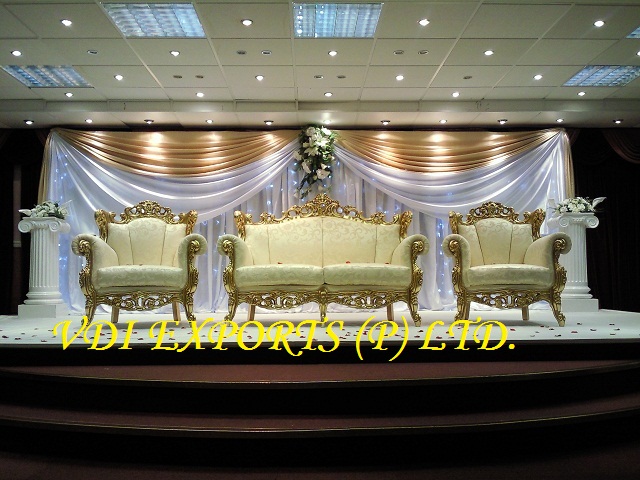 We manufacture latest wedding thrones wedding swings wedding sofa sets wedding carved furniture wedding chairs. Best material is used in making of wedding furniture. As We Manufacture and Exporters Royal Thrones Chairs Wedding Sofa Set Single Seated or Double Seated for Wedding Marriage Palaces Theme Parties or Home Decoration. We have different varieties of Wooden furniture like Wooden Carved Thrones Furniture for King�s palaces Historical Furniture Museum Furniture Early age furniture Wooden Shahi Thrones Sankheda Furniture Devdas Thrones Bollywood Furniture TV Serial Home Furniture Gold Plated Couches Silver carving three Seaters Two Seaters with golden carving Silver Shahi Thrones Royal Silver Chairs Wooden Carved Chairs Maharaja Chairs Love Seat for Bride n Groom Traditional Furniture Wedding Jaimala Chairs Banquet Hall Chairs Wedding Thrones Dining Chairs Single Chairs Living Room Chairs Fancy Designer Chairs Miscellaneous Furniture Wooden Shahi Deewans Duck Design two Seater Centre Table Miscellaneous furniture Wooden Stools. Wooden Carved furniture gives a unique look for Home Decoration Banquet Halls and Marriage Palaces Antique Design Furniture Wooden Carved Sofa Sets Royal Chair Latest Wooden Throne. We can make any type of furniture as per customers requirements.