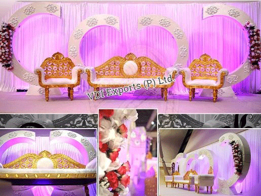 We are manufacturers exporters of any type of Designer Wedding Stage Indian Vivah Shadi Ring Ceremony Stage Fiber Wedding fiber panel stages, photo frames wedding stages , carved backdrops stages Roman Pillared Wedding Stage Lighted Pillars Wedding Stage Carved Stage Wrought Iron Wedding Stage Mehendi Stage Fiber Stage Roman Pillared Wedding Stage Lighted Pillars Wedding Stage Embroidered Backdrop Wedding Stage Ring Ceremony Wedding Stage Etc. We are also original manufacturers and exporters of any type of Indian Wedding Mandaps Mandap Fiber Mandaps Wedding Stages Stalls Mandap Backdrops Aisle corridor Pillars Entrance Statues Welcome Themed Gates Lighted Pillars Mandap Furniture Mandap Carving Furniture Bride and Groom Two Seater Chairs Banquet Hall Chairs Chair Covers Bows Sashas sashes Ribbons caps Table Covers Table Runners Table Napkins Table Skirting Canopies Tents Embroidered Backdrops Plain Backdrops Lighted Backdrops Carpets Cushion Covers Flower Decoration Material Mandap Decoration Flower Chains Wedding Umbrellas Themed Umbrellas Wedding Doli Palki Palquin Swings Jhoolas Royal Thrones Wrought Iron Center Tables Stands Horse Drawn Wedding Carriages Cinderella Carriages Buggies Horse Costumes Elephant Costumes Howdahs.