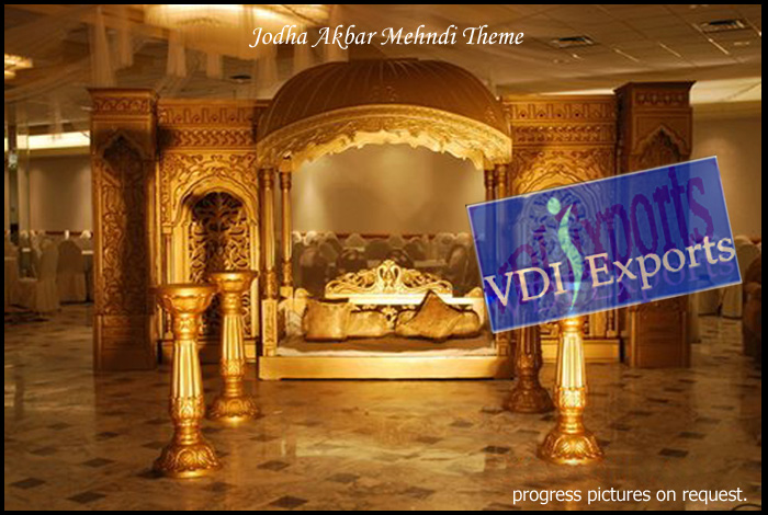 Manufacturers exporters of Vivaah Wedding Decoration Theme Ganesha Decoration Theme Garba Decoration Theme Ladies Sangeet Decoration Themes Rajasthani Decoration Theme Indian Wedding Decoration Themes Hindu Wedding Mehndi Decoration Theme as We are also manufacturer exporters of Indian Wedding Mandaps Wooden Mandap Carved Mandap Designer Shankheda Mandap Vivah Mandap Crystal Wedding Mandap Wrought Iron Shadi Mandap Fiber Mandaps Wedding Stages Stalls Aisle corridor Pillars Entrance Statues Welcome Themed Gates Lighted Pillars Furniture Carving Furniture Bride and Groom Two Seater Chairs Banquet Hall Embroidered Backdrops Lighted Backdrops Flower Decoration Flower Chains Wedding Umbrellas Wedding Doli Palki Swings Jhoolas Horse Drawn Wedding Carriages Cinderella Carriages Buggies Horse Costumes Elephant Costumes Howdahs.
