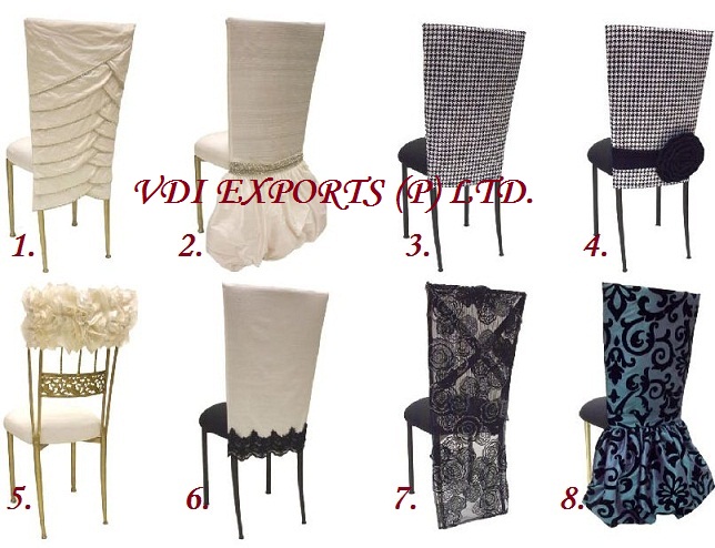 We Manufacture and Exports Chair Covers Table Covers Cushion covers Centre Table covers Overlays Sasha�s Banquet Hall Chairs covers with Bows Pillow covers in Round Square Rectangular shape Matt�s Mattress for Royal Palaces Kings Palaces Weddings Halls Rugs Runners Durries for Mehndi ceremony Ladies Sangeet Mattress with Round Pillows for comfortable sitting Silk cushion covers Carpets for Museums V I P conferences Halls various types of Table Skirting with Logo�s for conference halls Dining Table Skirting Decorated Food Stalls . We prepare Patch work Custom made Rajasthani Gujrati theme cushion covers Banquet Hall Chair Covers Canopies Arrangement for all theme parties. We provide samples of fabric that we use like Cotton fabric Satin Tissue Net fabric Lycra Bright Silk Chiffon Wrinkled fabric Embroidered fabric in all sizes n color.