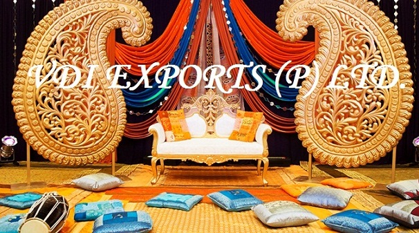 We are original manufacturers and exporters of any type of Indian Wedding Mandaps Mandap Pillars Wooden Mandaps Carved Mandaps Wrought Iron Mandaps Fiber Mandaps Wedding Stages Stalls Mandap Backdrops Aisle corridor Pillars Entrance Statues Welcome Themed Gates Lighted Pillars Mandap Furniture Mandap Carving Furniture Bride and Groom Two Seater Chairs Banquet Hall Chairs Chair Covers Bows Sashas sashes Ribbons caps Table Covers Table Runners Table Napkins Table Skirtings Canopies Tents Embodied Backdrops Plain Backdrops Lighted Backdrops Carpets Cushion Covers Flower Decoration Material Mandap Decoration Flower Chains Wedding Umbrellas Themed Umbrellas Wedding Doli Palki Palquin Swings Jhoolas Royal Thrones Catering Equipments Chaffing Dishes Karahi Stands Stainless Steel Aluminum Brass Copper Utensils of all Types Sizes Disposable Papers Thermocol Crockery Center Table Decoration items Wrought Iron Center Tables Stands Horse Drawn Wedding Carriages Cinderella Carriages Bugghies Horse Costumes Elephant Costumes Howdahs.