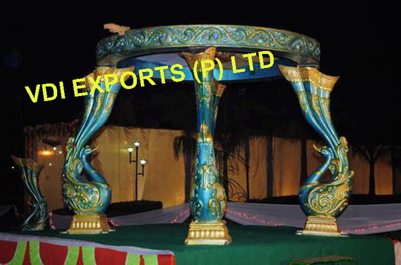 We are original manufacturers and exporters of any type of Indian Wedding Mandaps Mandap Pillars Wooden Mandaps Carved Mandaps Wrought Iron Mandaps Fiber Mandaps Wedding Stages Stalls Mandap Backdrops Aisle corridor Pillars Entrance Statues Welcome Themed Gates Lighted Pillars Mandap Furniture Mandap Carving Furniture Bride and Groom Two Seater Chairs Banquet Hall Chairs Chair Covers Bows Sashas sashes Ribbons caps Table Covers Table Runners Table Napkins Table Skirtings Canopies Tents Embroided Backdrops Plain Backdrops Lighted Backdrops Carpets Cushion Covers Flower Decoration Material Mandap Decoration Flower Chains Wedding Umbrellas Themed Umbrellas Wedding Doli Palki Palquin Swings Jhoolas Royal Thrones Catering Equipments Chaffing Dishes Karahi Stands Stainless Steel Aluminum Brass Copper Utensils of all Types Sizes Disposable Papers Thermocol Crockery Center Table Decoration items Wrought Iron Center Tables Stands Horse Drawn Wedding Carriages Cinderella Carriages Bugghies Horse Costumes Elephant Costumes Howdahs.