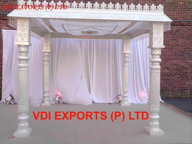 We are original manufacturers and exporters of any type of Indian Wedding Mandaps Mandap Pillars Wooden Mandaps Carved Mandaps Wrought Iron Mandaps Fiber Mandaps Wedding Stages Stalls Mandap Backdrops Aisle corridor Pillars Entrance Statues Welcome Themed Gates Lighted Pillars Mandap Furniture Mandap Carving Furniture Bride and Groom Two Seater Chairs Banquet Hall Chairs Chair Covers Bows Sashas sashes Ribbons caps Table Covers Table Runners Table Napkins Table Skirtings Canopies Tents Embroided Backdrops Plain Backdrops Lighted Backdrops Carpets Cushion Covers Flower Decoration Material Mandap Decoration Flower Chains Wedding Umbrellas Themed Umbrellas Wedding Doli Palki Palquin Swings Jhoolas Royal Thrones Catering Equipments Chaffing Dishes Karahi Stands Stainless Steel Aluminum Brass Copper Utensils of all Types Sizes Disposable Papers Thermocol Crockery Center Table Decoration items Wrought Iron Center Tables Stands Horse Drawn Wedding Carriages Cinderella Carriages Bugghies Horse Costumes Elephant Costumes Howdahs.