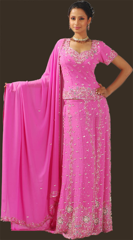 Attractive prices for boutique owners, bulk buyers etc. You can send us any photograph or picture as an attachment through email and we will prepare the similar for you. Very little changes can be occur as these are hand embroidered dresses. Price of this PINK GEORETTE LEHNGA CHOLI on request