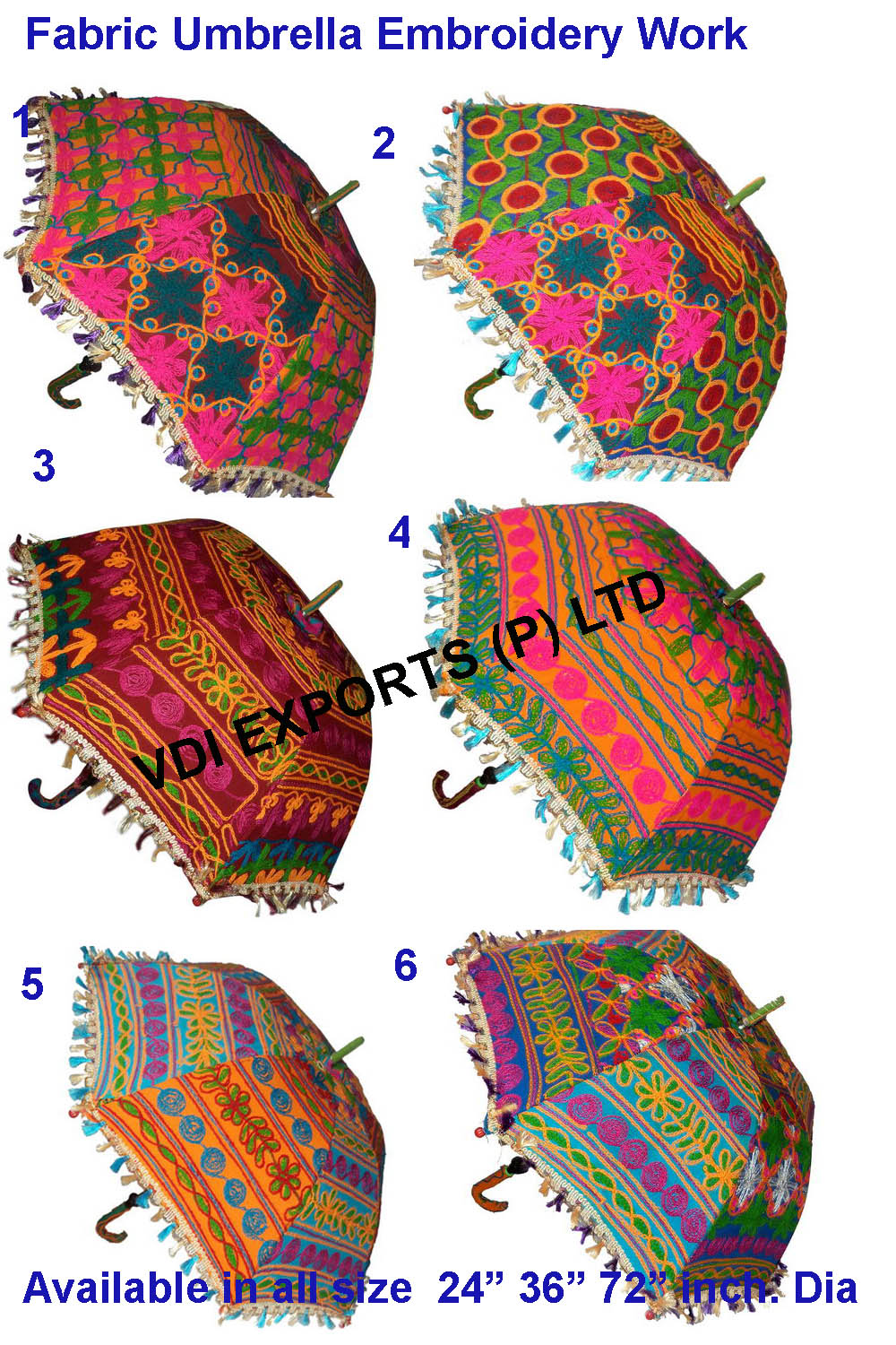 We Manufacture and Exports Wedding Umbrella and Parasols for Wedding Celebration Carnival parades for Holy processions in various fabrics like satin bright fabric cotton silk with embroidered work on it in multicolor designs. We have Heavy Embroidered Umbrella Custom made Umbrella Valvet fabric Umbrella Plain Fabric Umbrella with Hanging Tassels Umberlla with Hanging Frill Royal Pearl Beading Parasol Garden Historical film Parasols King�s Parasols Elephant Over shed Parasol Umbrella with laces Jaipuri theme Red Umbrella with hanging crystalsUmbrella Patch work Umbrella Beach Umbrella Rani Wedding Parasol Net Fabric Parasol with hanging tussels Parasols with Red Sequins Procession Umbrella Pearl Beading Parasols purple fabric Parasol Embroidery Rajasthani Theme Umbrella etc.