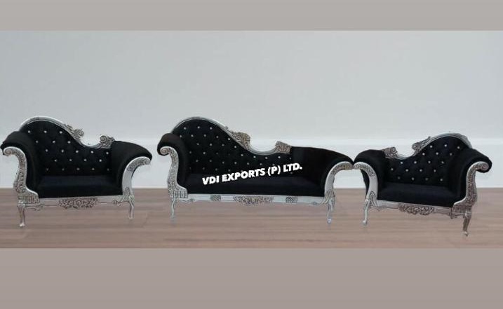 SILVER BLACK THEME WOODEN COUCH SET