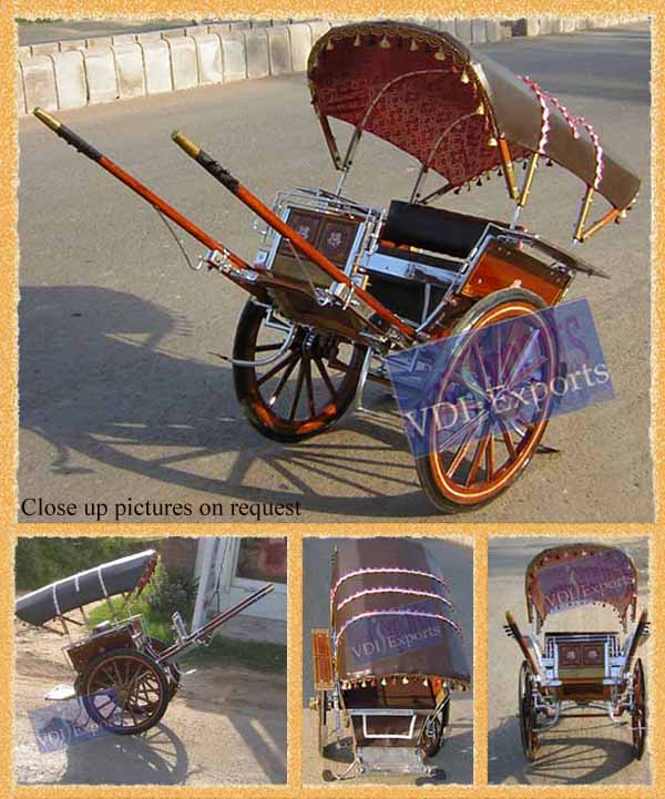 We also supply any kind of carriage spare parts such as wooden wheels metal wheels of any size / make and upholstery Lamp, Leather Harnesses Horse Decorations and accessories. We also supplied Horse Carriage carts gigs etc to Hollywood or bollywood Film Producers Directors. So please feel free to contact us and give us chance to serve you the best. Attractive prices for bulk buyers resellers dealers etc. You can send us any photograph or picture as an attachment through email and we are fully capable to prepare the same. Price of this TRADITIONAL INDIAN TANGAS on request.