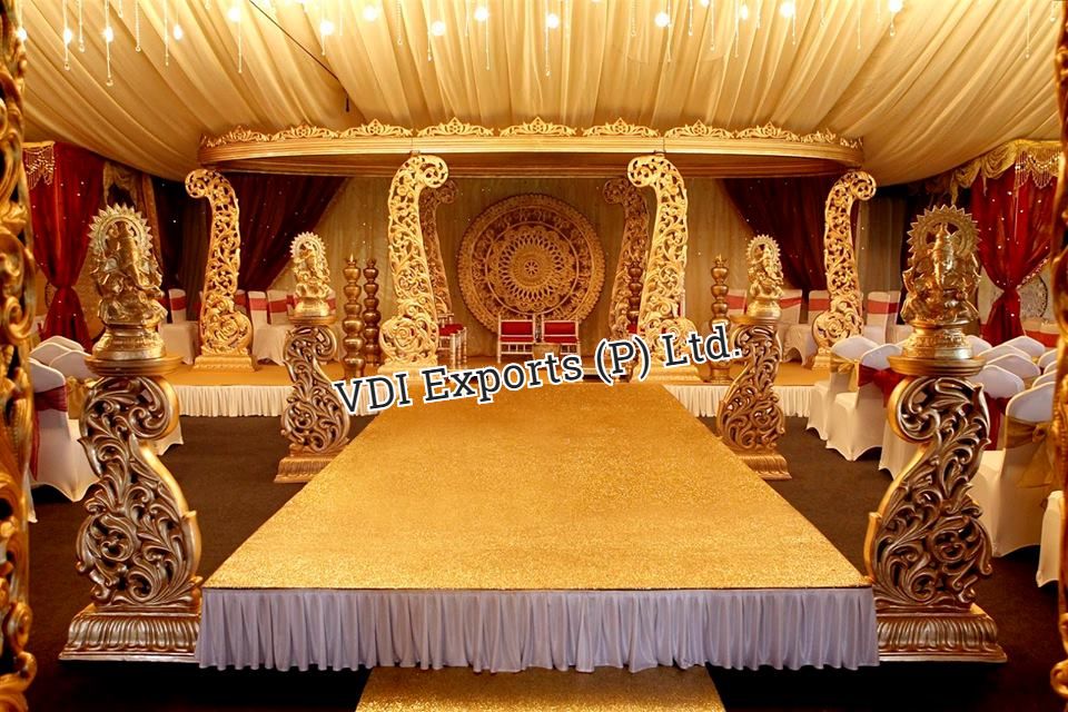 We are original manufacturers and exporters of any type of Indian Wedding Mandaps Mandap Pillars Wooden Mandaps Carved Mandaps Wrought Iron Mandaps Fiber Mandaps Wedding Stages Stalls Mandap Backdrops Aisle corridor Pillars Entrance Statues Welcome Themed Gates Lighted Pillars Mandap Furniture Mandap Carving Furniture Bride and Groom Two Seater Chairs Banquet Hall Chairs Chair Covers Bows Sashas sashes Ribbons caps Table Covers Table Runners Table Napkins Table Skirtings Canopies Tents Embroided Backdrops Plain Backdrops Lighted Backdrops Carpets Cushion Covers Flower Decoration Material Mandap Decoration Flower Chains Wedding Umbrellas Themed Umbrellas Wedding Doli Palki Palquin Swings Jhoolas Royal Thrones Catering Equipments Chaffing Dishes Karahi Stands Stainless Steel Aluminum Brass Copper Utensils of all Types Sizes Disposable Papers Thermocol Crockery Center Table Decoration items Wrought Iron Center Tables Stands Horse Drawn Wedding Carriages Cinderella Carriages Bugghies Horse Costumes Elephant Costumes Howdahs.